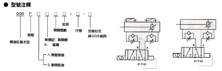 本產(chǎn)品是由QGS系列氣缸換向閥磁性開關(guān)組合而成,安裝形式和安裝尺寸與QGS系列氣缸相同。